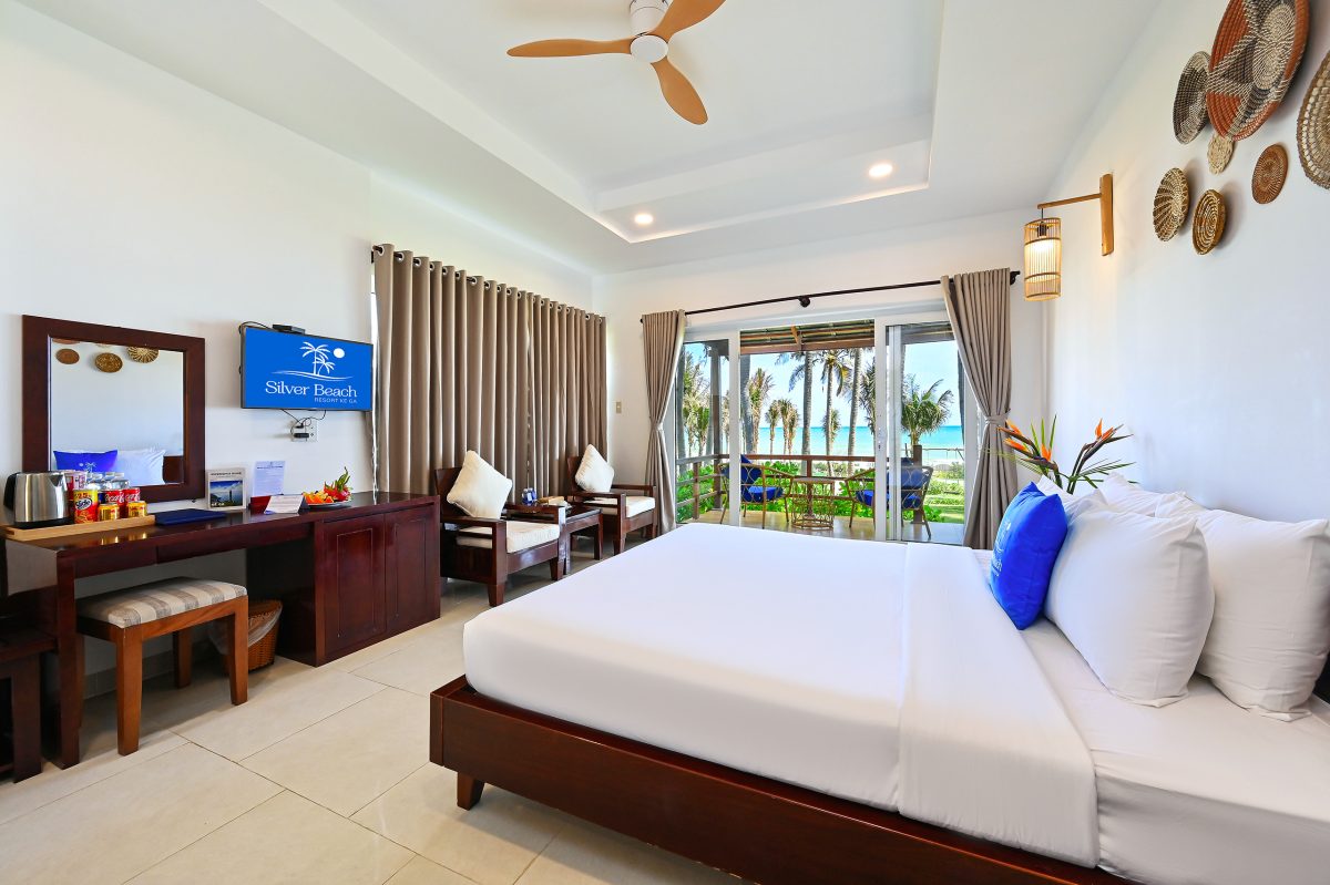 Hồ bơi vô cực hướng bình minh, bãi cát trắng mịn trải dài, những hàng dừa nghiêng mình trong gió biển. Mọi chi tiết tại Silver Beach đều được chăm chút để mang đến một không gian nghỉ dưỡng tinh tế, nơi bạn không chỉ dừng chân, mà còn được tái tạo năng lượng, làm mới chính mình.