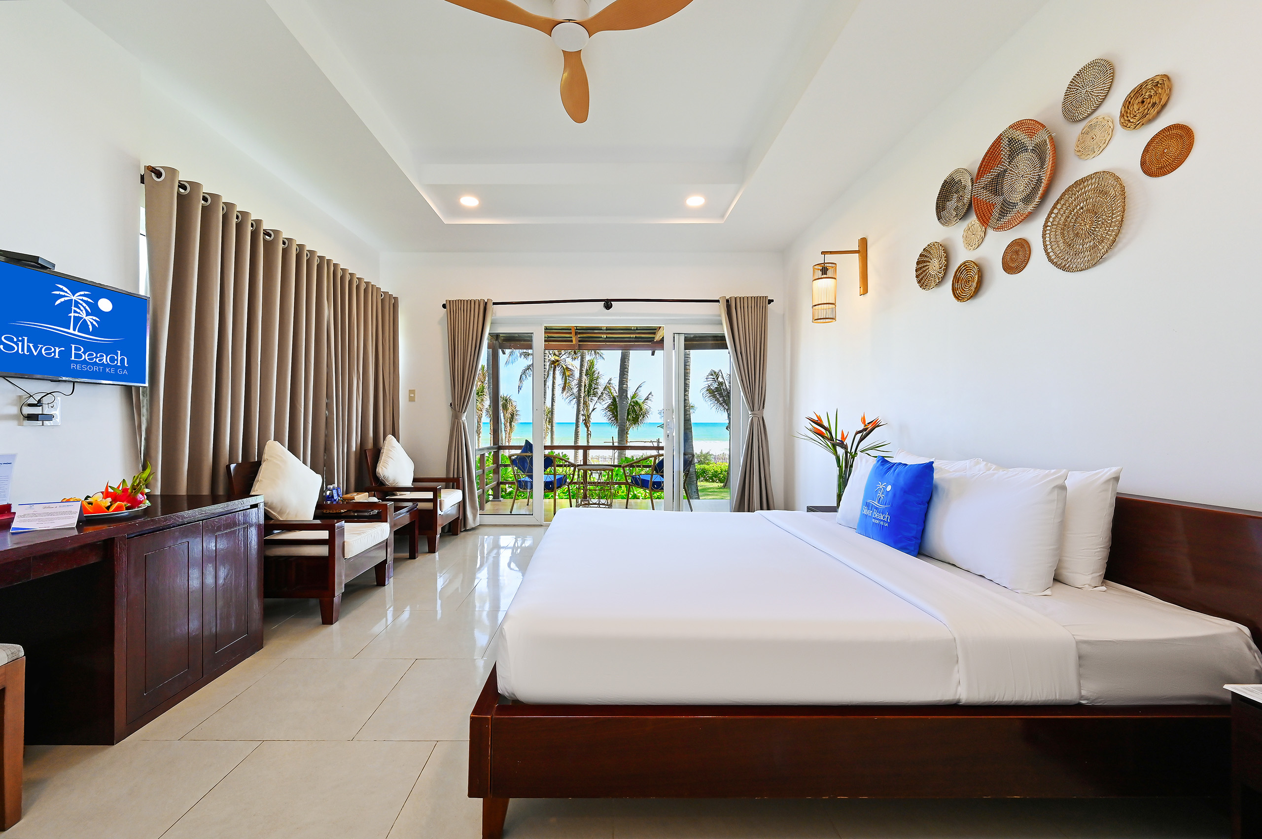 Phòng bungalow rộng rãi, gồm 1 giường đôi lớn, phù hợp cho cặp đôi hoặc khách du lịch mong muốn trải nghiệm sự riêng tư và thư giãn tối đa. Thiết kế mở, có hiên riêng hướng biển, đón trọn ánh nắng ban mai và gió biển trong lành.