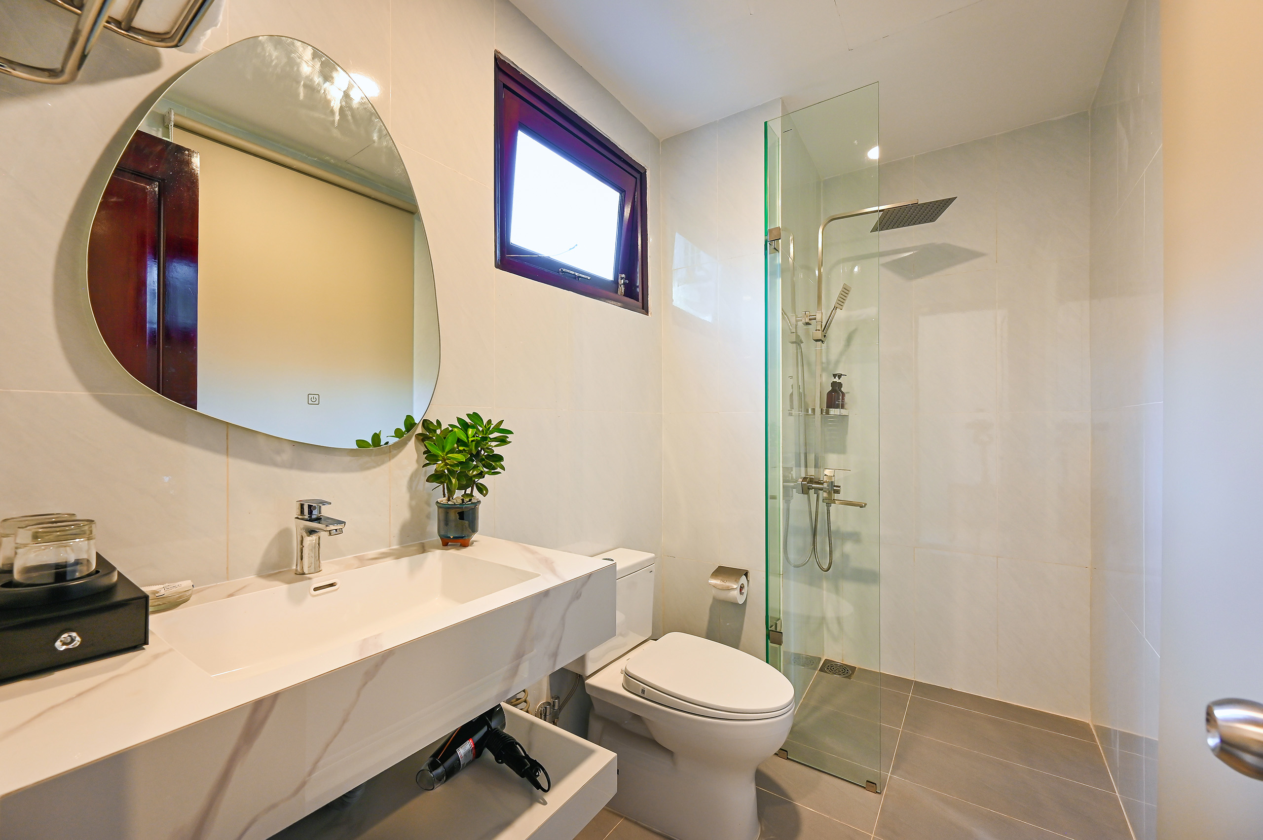 Trang bị đầy đủ tiện nghi hiện đại: điều hòa, TV truyền hình cáp, phòng tắm riêng với buồng tắm đứng, máy sấy tóc và tường cách âm – mang đến sự riêng tư và thoải mái tuyệt đối.